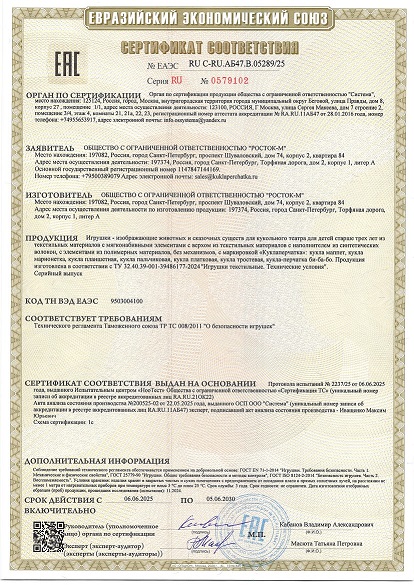 Хотим отметить, что наши игрушки прошли сертификацию, получен Сертификат соответствия Таможенного союза.