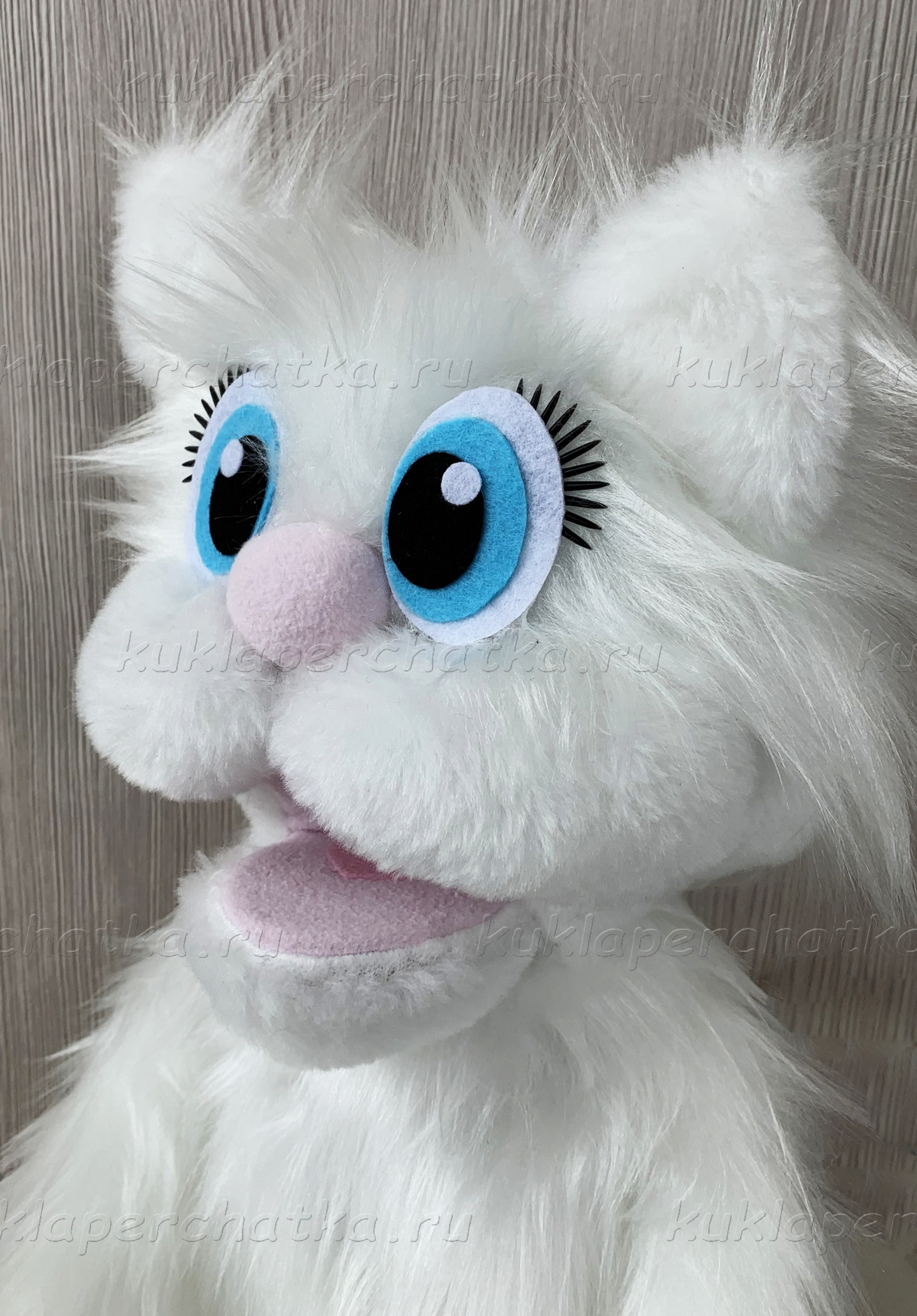 Кот / Кошка белый - кукла-маппет с открывающимся ртом, 40 см.