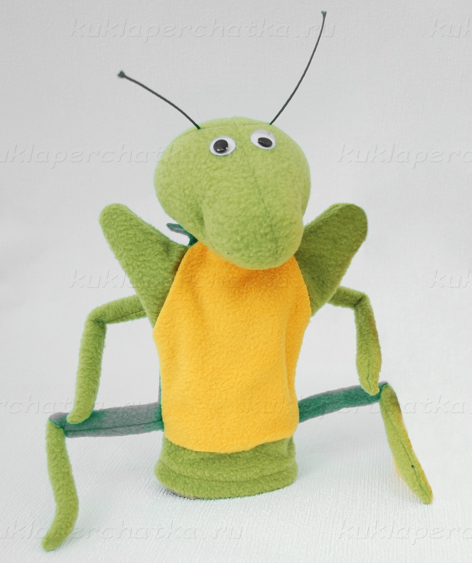 Кузнечик - кукла-маппет с открывающимся ртом, 35-40 см.