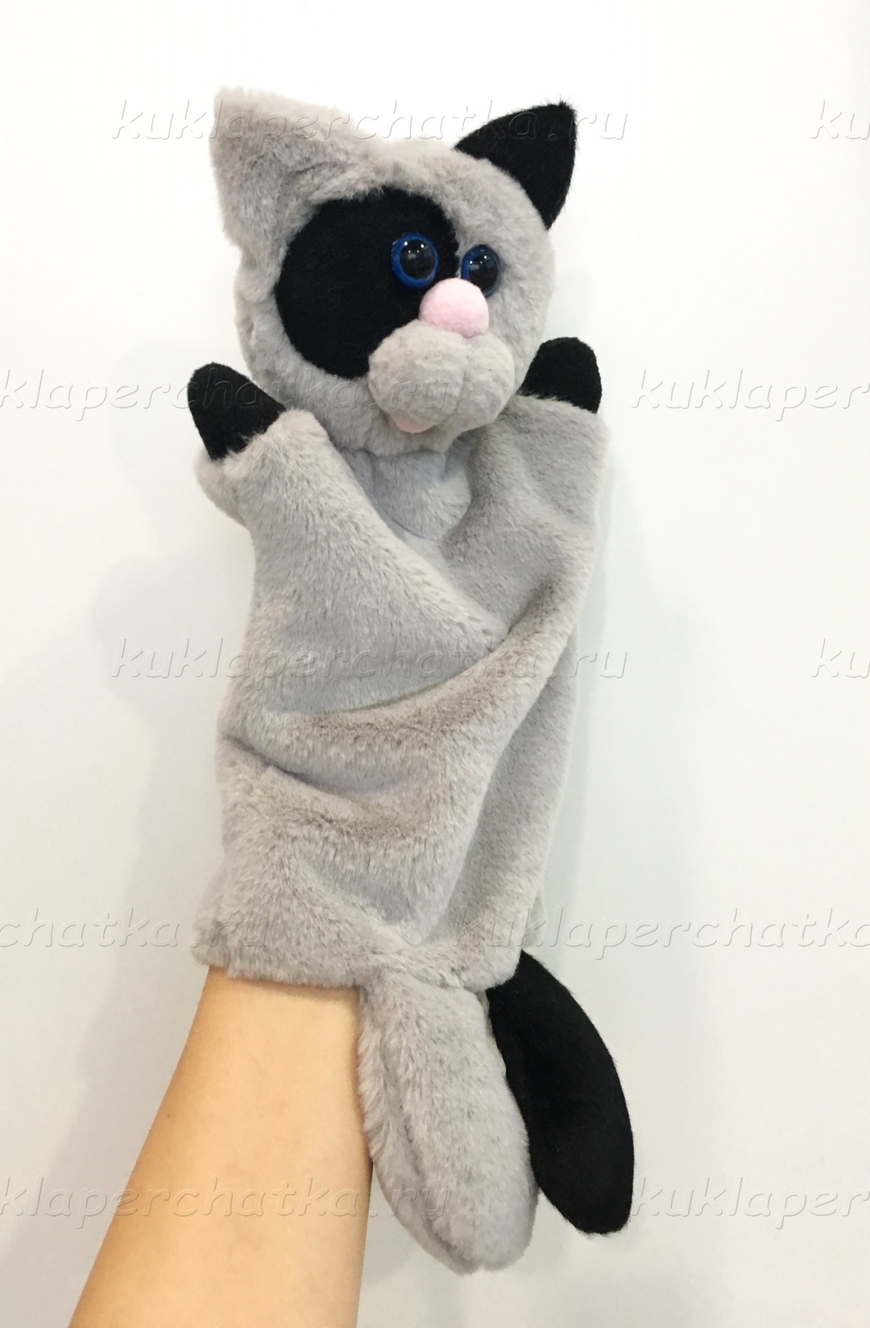 Котик-пушистик серый кукла-перчатка