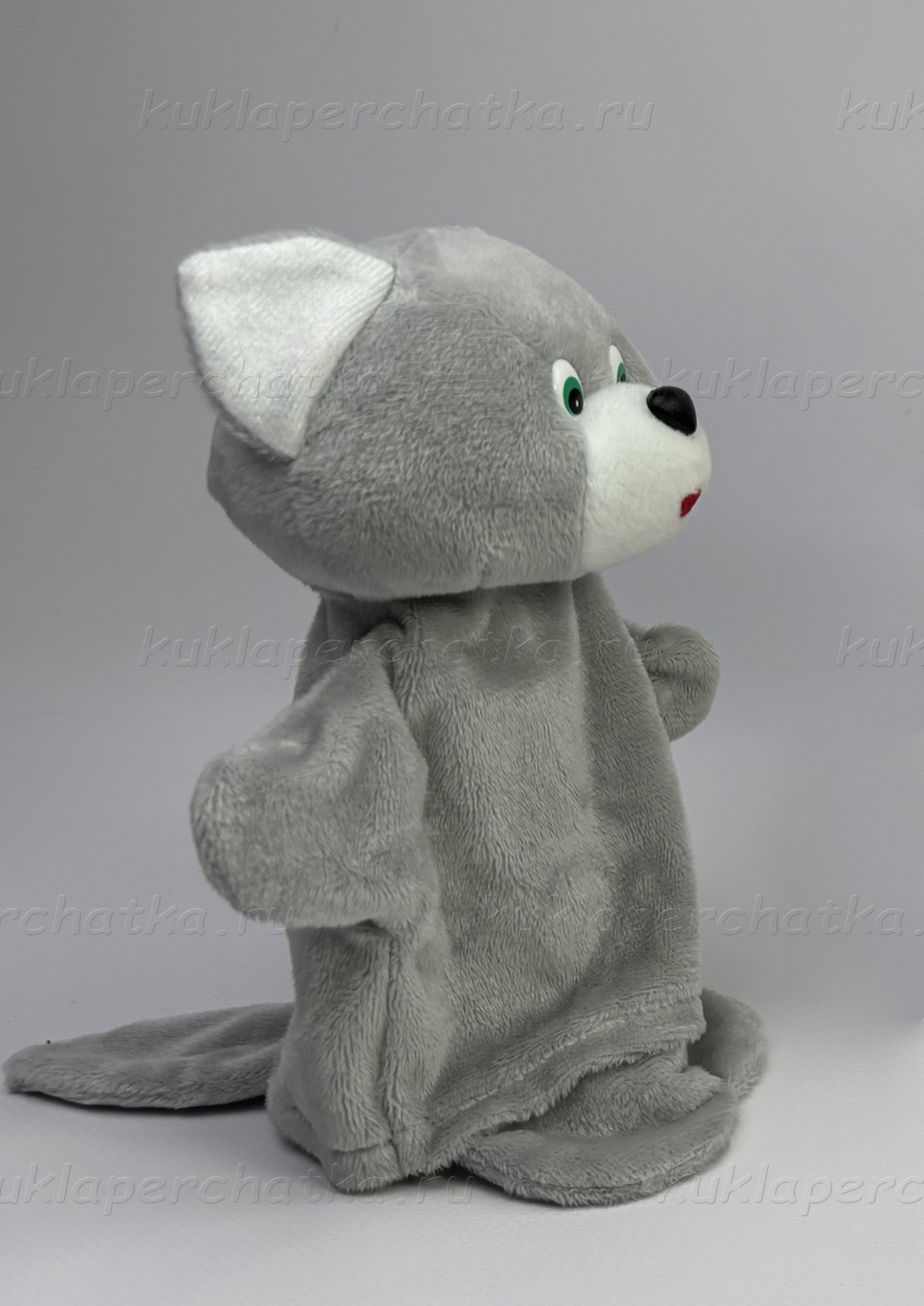Кот / Кошка белый - кукла-маппет с открывающимся ртом, 40 см.