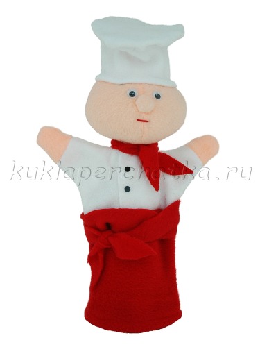 Повар - кукла-маппет с открывающимся ртом.