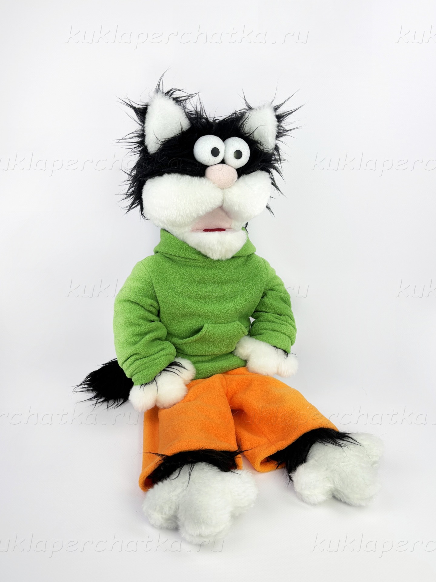 Кот - маппет с открывающимся ртом.