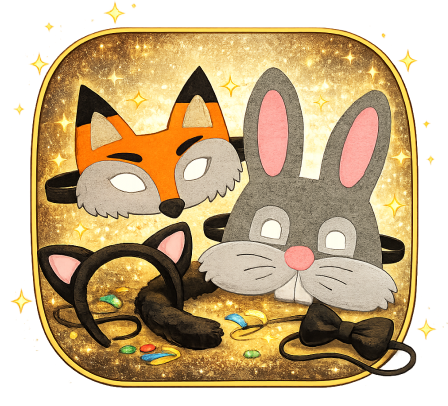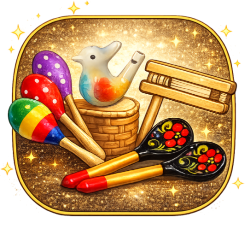 В этом разделе карнавальные маски, музыкальные инструменты, дергунчики и прочие игрушки-забавы