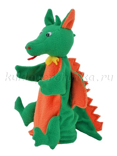 Дракончик - кукла-перчатка ручной работы . Сшита из флиса. Голова мягко-набивная. Глазки приклеены. Очень мягкая и уютная игрушка, крепко и удобно сидит на руке (не тяжелая - около 100 гр.) . Подходит как для взрослой руки, так и для детской руки. Размер около 25 см. Очень нравится детям.