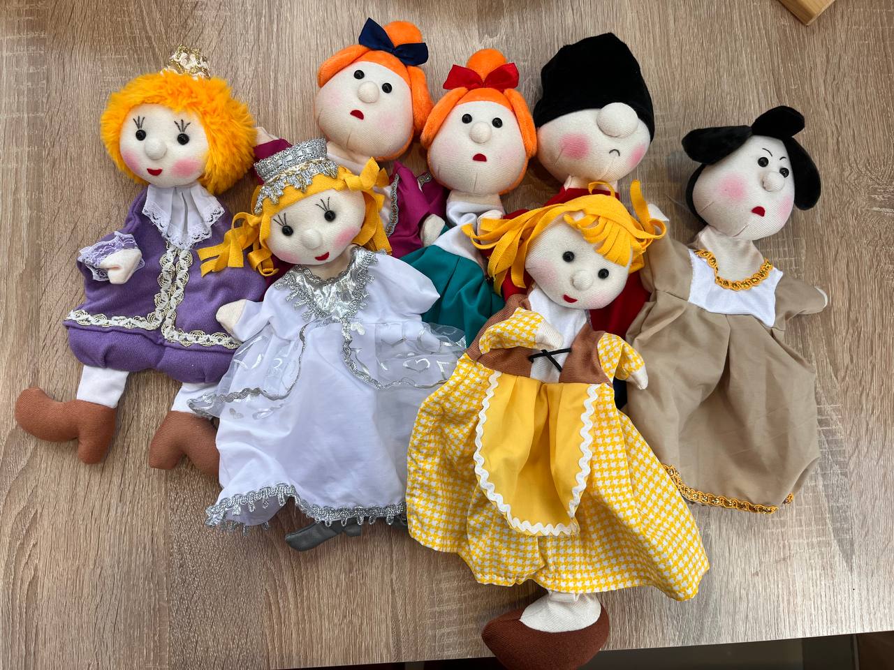 Набор по сказке Перро/Гримм про Золушку состоит из 7 перчаточных кукол: девочка ненарядная, девочка нарядная, Принц, Мачеха, 2 сестры, Гвардеец.